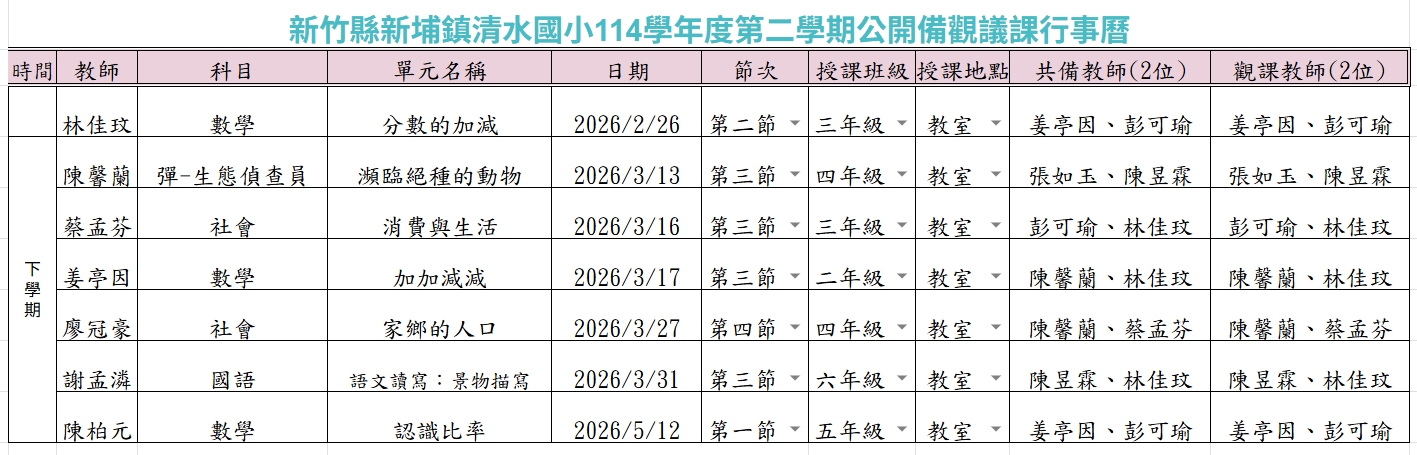 114學年度第2學期公開授課規劃